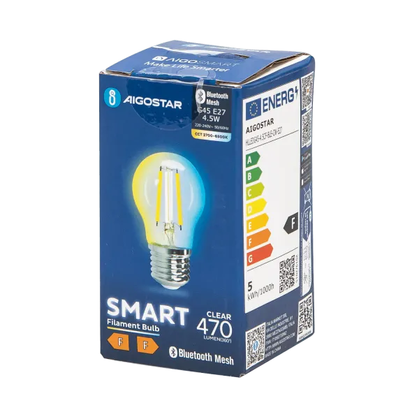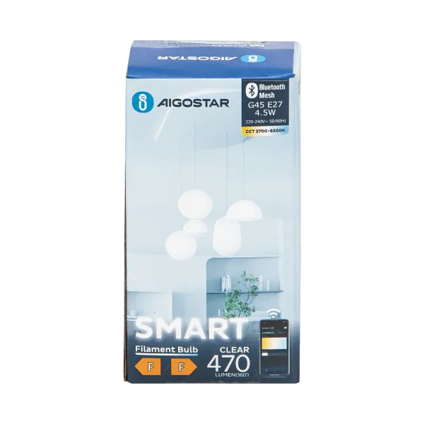 descubre la innovadora bombilla de filamento bluetooth mesh smart g45 de 4.5w cct, diseñada para transformar la iluminación de tu hogar con un toque de modernidad. con su estética vintage de filamento, esta bombilla no solo proporciona una luminosidad cálida y acogedora, sino que también permite un control total desde tu dispositivo móvil gracias a su tecnología bluetooth mesh. la bombilla g45 cuenta con la versatilidad de la temperatura de color ajustable (cct), lo que te permite adaptar la luz según el momento del día o tu estado de ánimo, desde un suave tono cálido hasta una luz más fresca. con solo un toque, podrás crear ambientes ideales para cada ocasión, ya sea una cena romántica, una reunión con amigos o un momento de relajación. instala la bombilla fácilmente en cualquier portalámparas estándar y conecta múltiples unidades en red para gestionar toda tu iluminación desde la misma aplicación. su eficiencia energética de 4.5w garantiza un bajo consumo, contribuyendo al cuidado del medio ambiente y a la reducción de tu factura de electricidad. la bombilla bluetooth mesh smart g45 es la solución perfecta para quienes buscan combinar funcionalidad y estilo en su espacio. adquiere la tuya y dale un nuevo brillo a cada rincón de tu hogar. ¡convierte tu casa en un hogar inteligente hoy mismo!